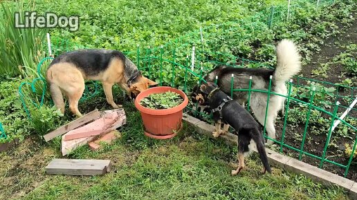 Две собаки пакостят, третья стоит на стрëме