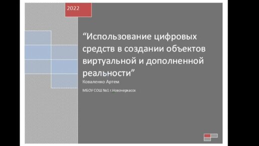 Мастер-класс "Использование цифровых средств в создании объектов виртуальной и дополненной реальности"