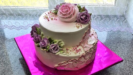 Как собрать двухъярусный торт и украсить красивыми цветами | Сборка и украшение | Свадебный торт