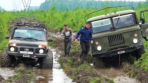 Спор ГАЗ 66 против волшебной Нивы на безнадёжном бездорожье. Армейский грузовик СССР или самоделки.
