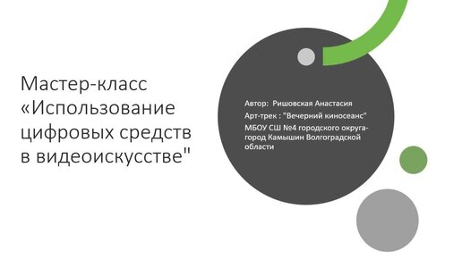 Мастер-класс «Использование цифровых средств в видеоискусстве»