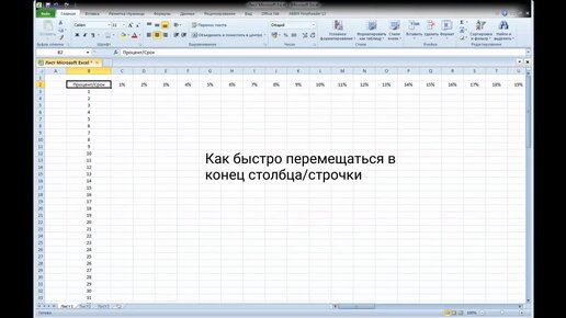 Как в Excel быстро перемещаться в конец столбца, строчки?