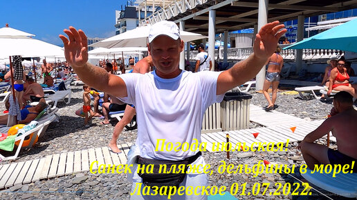 Погода супер! Санек на пляже, а в море много дельфинов! 01.07.2022🌴ЛАЗАРЕВСКОЕ СЕГОДНЯ🌴СОЧИ
