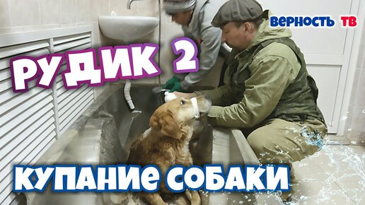 Купание пострадавшего пса Рудика