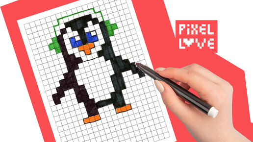 Pixel Love. Как нарисовать пингвина по клеточкам.