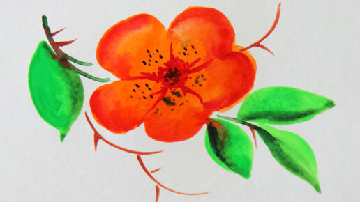 Рисуем простой Ярко-красный цветок. Простые рисунки для детей и начинающих. Акварель