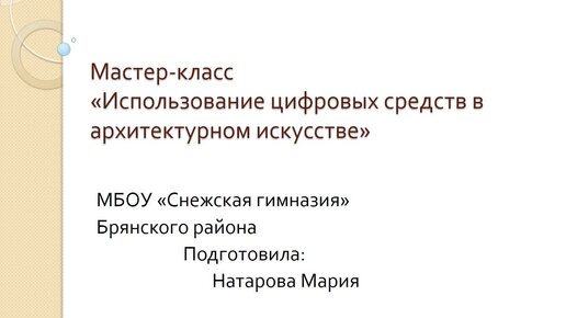 Арт-трек "Арт-город". Натарова Мария. Мастер-класс «Использование цифровых средств в архитектурном искусстве»