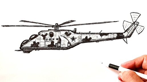 Как нарисовать Военный Вертолёт Ми-24