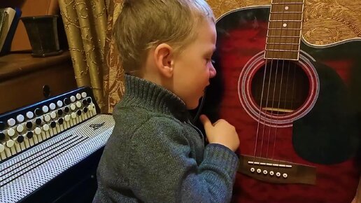 В 3 года пытаемся сыграть на гитаре и спеть песенку