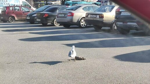Чайка ест голубя