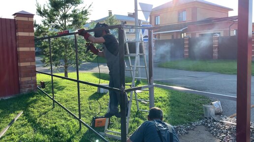 установка откатные ворота автоматические , забор профнастил стррительство