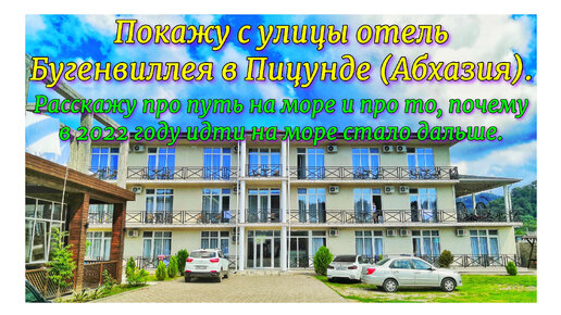 Покажу с улицы отель Бугенвиллея в Пицунде (Абхазия). Расскажу про путь на море и про то, почему в 2022 году идти на море стало дальше.