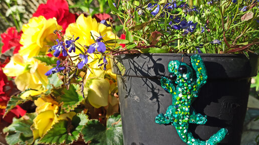 Ящерка-геккон отличное украшение для цветов. Из папье-маше своими руками