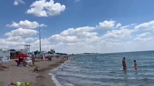 Пляж АкваЕвпатория сегодня, Заозёрное. Ветренно, жара, вода в море +20
