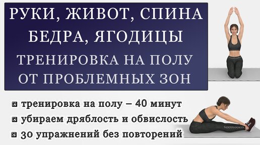 Тренировка от проблемных зон полностью на полу: руки, живот, спина, бедра, ягодицы (40 минут без повторов упражнений)