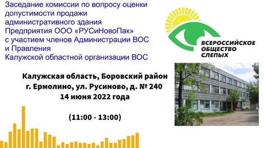 Запись заседания комиссии ВОС из-за спора о намеченной продаже администр. здания предприятия "РУСиНовоПак" - 14.06.22