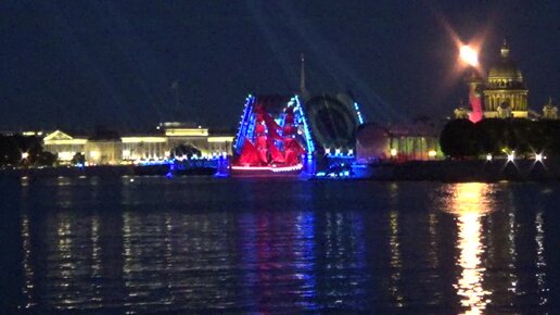 Проход брига "Алые паруса" между крыльями разведённого Дворцового моста