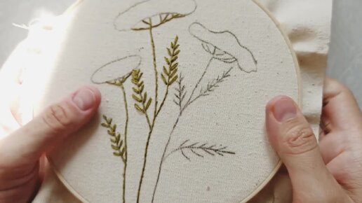 Вышиваю тысячелистник. Стебельчатый шов и петля вприкреп