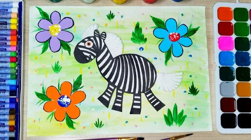 Веселая зебра. Как нарисовать пошагово. Аппликация для детей