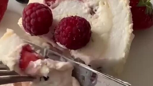 Бесподобный меренговый рулет с ягодами🍒🍓