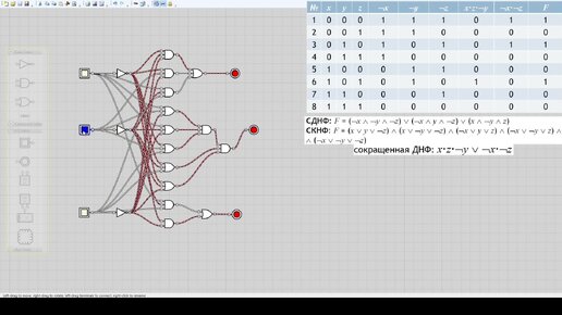 Logic Gate Sim: сокращённая дизъюнктивная и совершенные нормальные формы для логических формул
