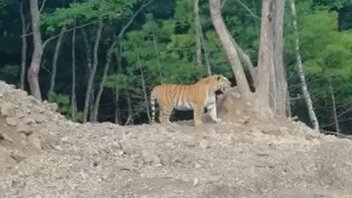 Красивый и важный тигр вышел к приморцам! Посмотрел на все, что происходит и решил уйти обратно
