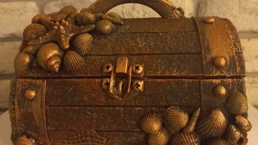 Сундучок со "дна морского": ракушки, кораллы, морские звезды, песок и...картонная коробка от новогоднего подарка!