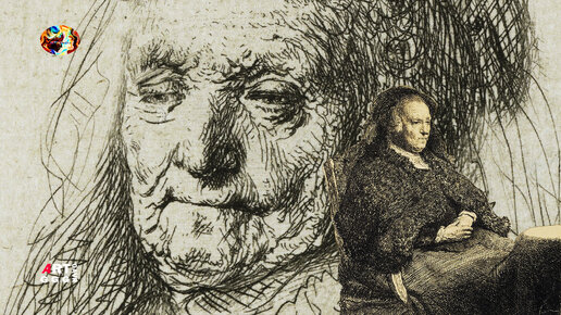 Рембрандт ван Рейн. Гравюра. Офорт. Портрет матери.