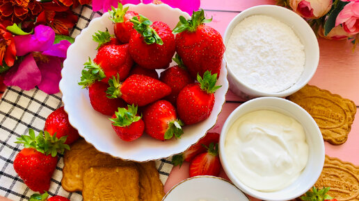 ПРОСТОЙ ДЕСЕРТ ИЗ КЛУБНИКИ.БЕЗ ВЫПЕЧКИ.Просто и очень вкусно.