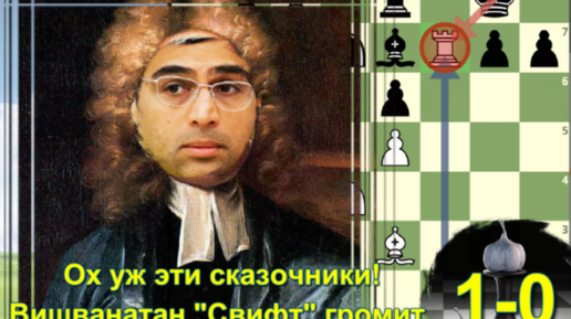 Вишванатан Ананд играет в свифт-рапид против Ивана Соколова, изящно отдавая фигуры одну за другой (Брюссель, 1992, 1-0) - мат в доигрывании