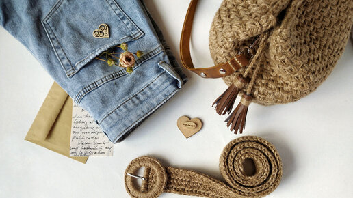 Вязаный ремень из джута крючком. Ремешок. Пояс.