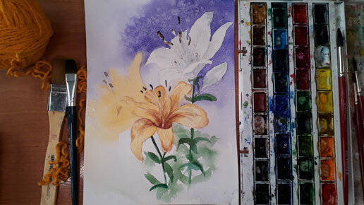 Рисуем цветы лилии акварелью