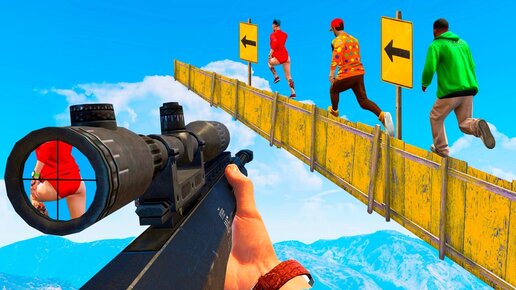 СНАЙПЕР УБИЙЦА ПРОТИВ ОТВАЖНЫХ БЕГУНОВ НА ТОНКОМ ЗАБОРЕ! (GTA 5 Смешные моменты)