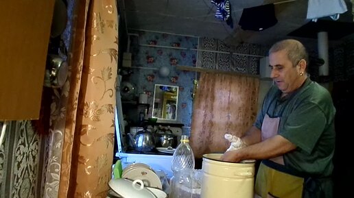 ДЕД ПЕКАРЬ МЕСИТ ТЕСТО ДЛЯ ХЛЕБА.