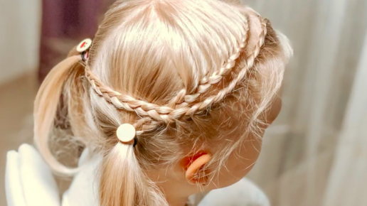 Красивая прическа для девочек - Два низких хвоста с косами - Прически в школу и садик