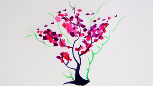 Как нарисовать цветущее дерево САКУРЫ. Уроки рисования для детей и начинающих. Акварель
