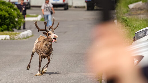 Северный олень сбежал от хозяйки и устроил забег по городским улицам