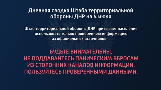 Дневная сводка штаба территориальной обороны ДНР на 04 июля 2022 года