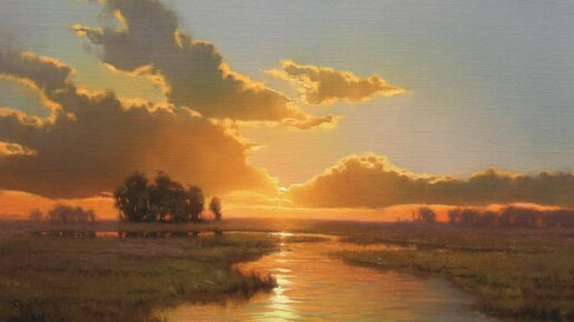 Простой пейзаж с закатом для начинающих|Как рисовать закат простая техника #art #урокирисования