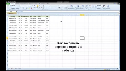 Как в Excel закрепить верхнюю строку в столбце?