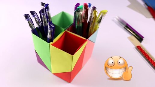 ОРИГАМИ ОРГАНАЙЗЕР из бумаги ПОДСТАВКА для ручек и карандашей | Поделки из бумаги для детей