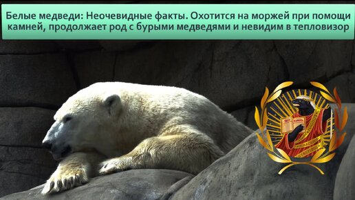 Белые медведи: Неочевидные факты. Охотится на моржей при помощи камней, продолжает род с бурыми медведями и невидим в тепловизор | Видео 🎥