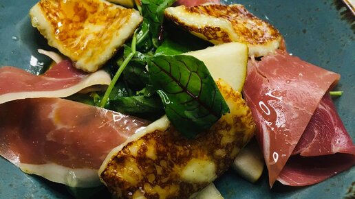 Салат с хамоном, грушей и сыром "Халуми"