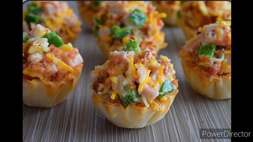 Салат с курицей и ананасом в тарталетках
