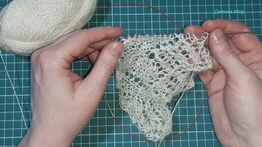 Далее: Ажурный узор спицами для середины платка