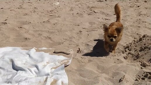 #крым Чишка Рокси на пляже.Активный отдых.Наелась песка.