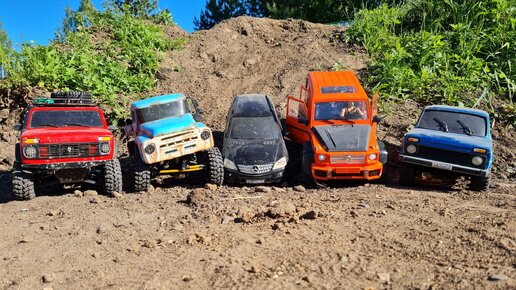 ВАЛЯТСЯ с горы все! ... Пять внедорожников и МОЩНЫЙ ПОДЪЕМ в гору ... RC OFFroad 4x4