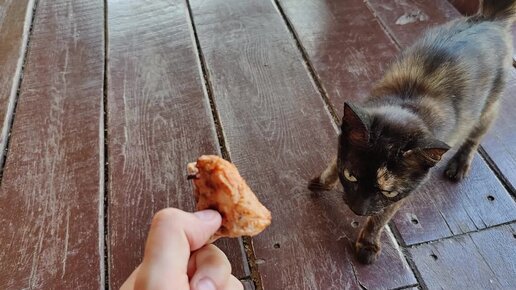 Кошка и котята, которые живут в трубе. Накормили кошку шашлыком, а она сразу убежала кормить своих котят