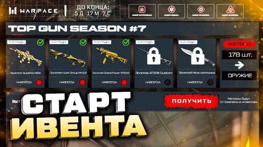 СТАРТ НОВЫЙ ИВЕНТ TOP GUN 7 СЕЗОН ЗОЛОТЫЕ НАГРАДЫ WARFACE - Обновление, Закрытие Достижения, Подарки