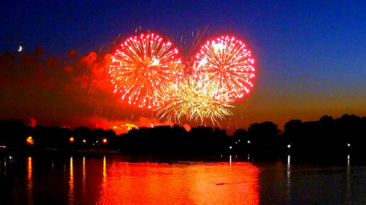 Красивый Салют Фейерверк над Рекой. День Независимости Республики Беларусь. Минск, 3 Июля 2022